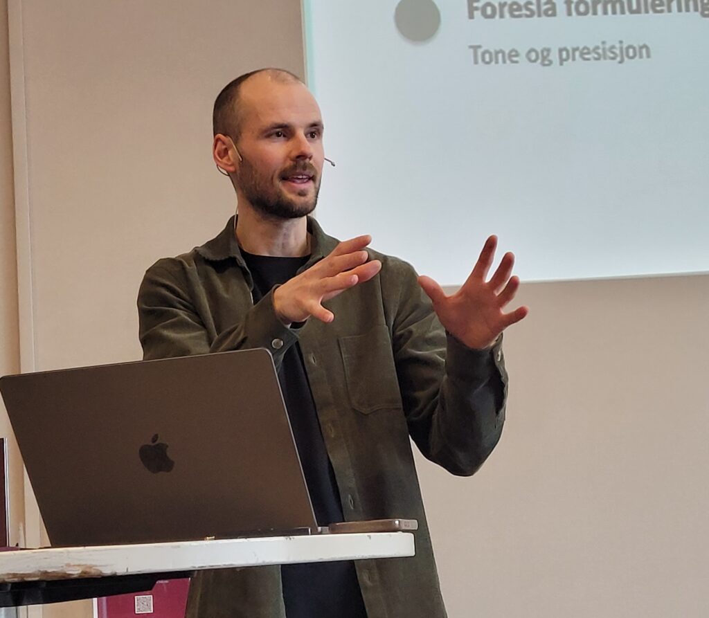 Han la vekt på at når vi ber KI om utkast, er det viktig å vere presise i oppdraget. Men vi må vere kritiske og ikkje stole 100 % på svaret KI gjev, men gå gjennom det og korrigere og gjerne gå inn i kjeldene.