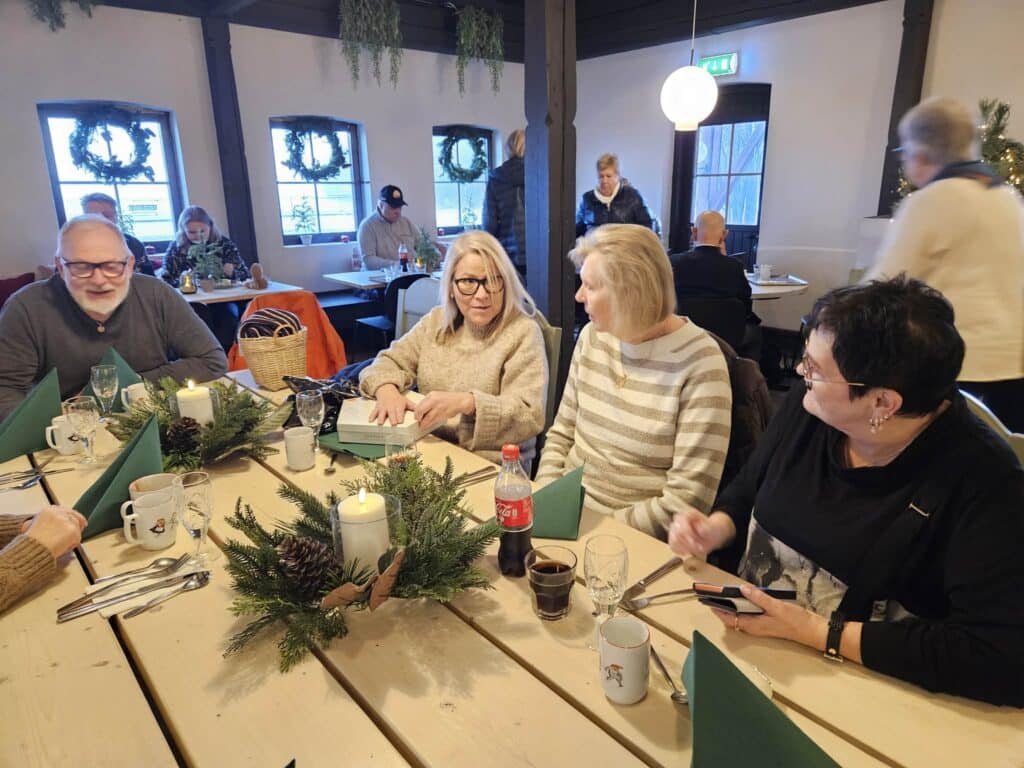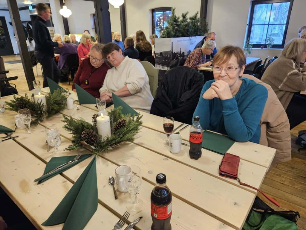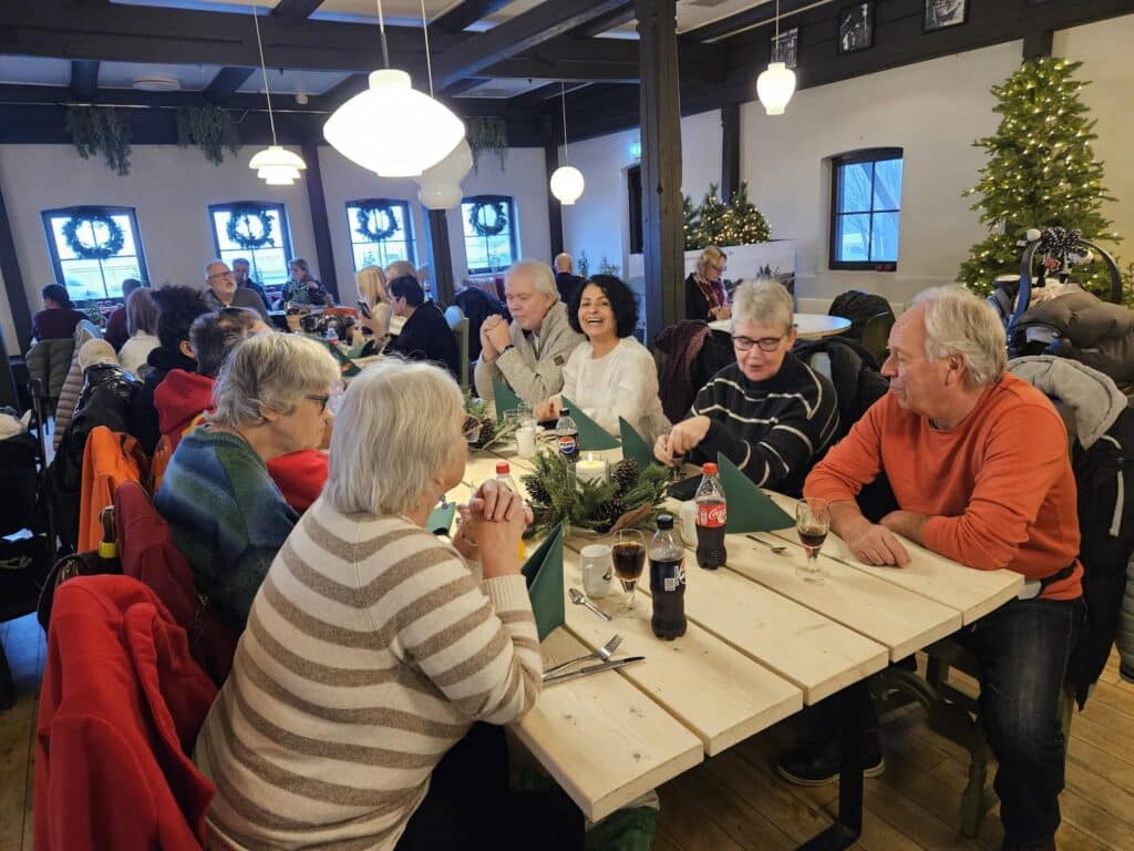 Vi var 22 medlemmer som 10 desember reiste på førjulstur til Hadeland Glassverk i dag. Ikke mye julestemning pga av været, men noen fikk shoppet noen julegaver, mens andre nøyde seg med å kikke og prøve ting. Dagen på Hadeland ble avsluttet med juletallerken, riskrem og kaffe.