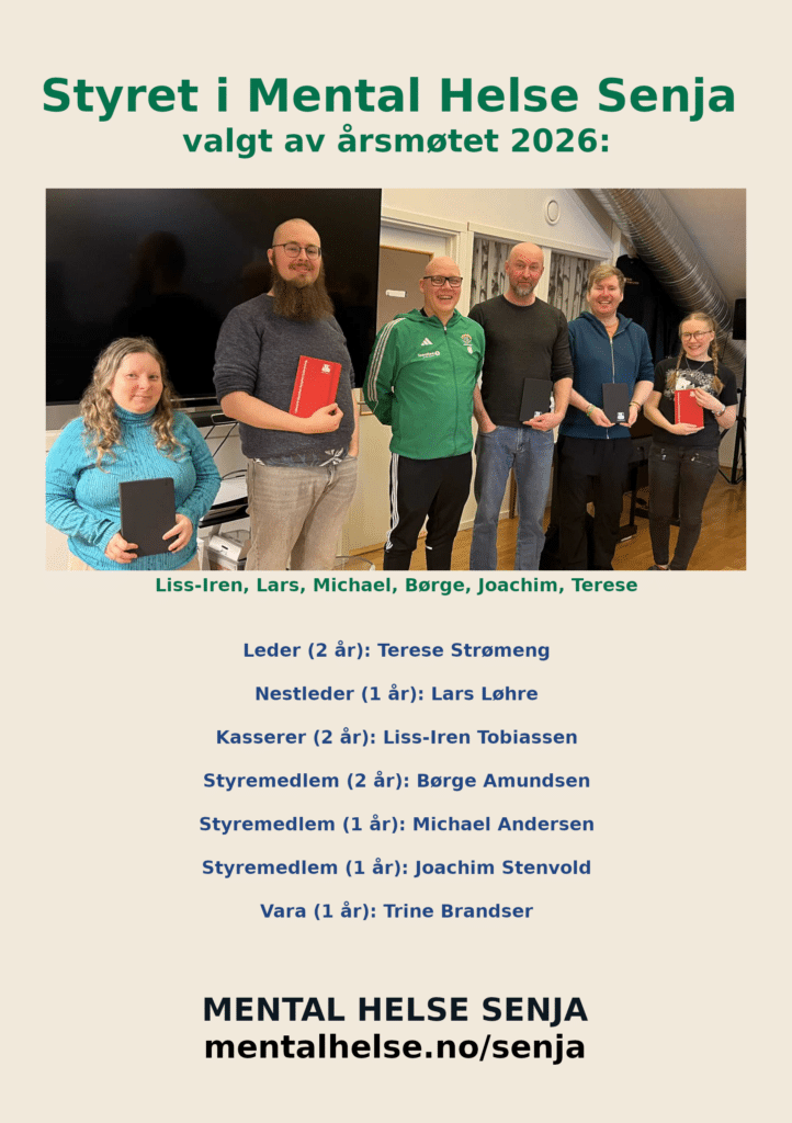 Folkebladet delte en artikkel om årsmøtet i Mental Helse Senja på nett i dag: link til Folkebladet.no.