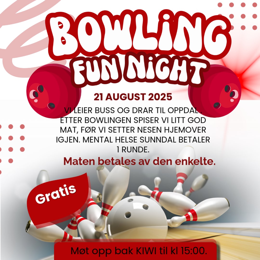 21 aug Bowling på Oppdal 21. august 2025 14:00 Det var en fin gjeng som dro til Oppdal for å spille bowling. Vår eminente Terje var igjen sjåfør. Andre kommende arrangementer 17 des Onsdagskafè Annenhver uke , på Onsdag , 17:00 – 20:00Øranvegen 29
